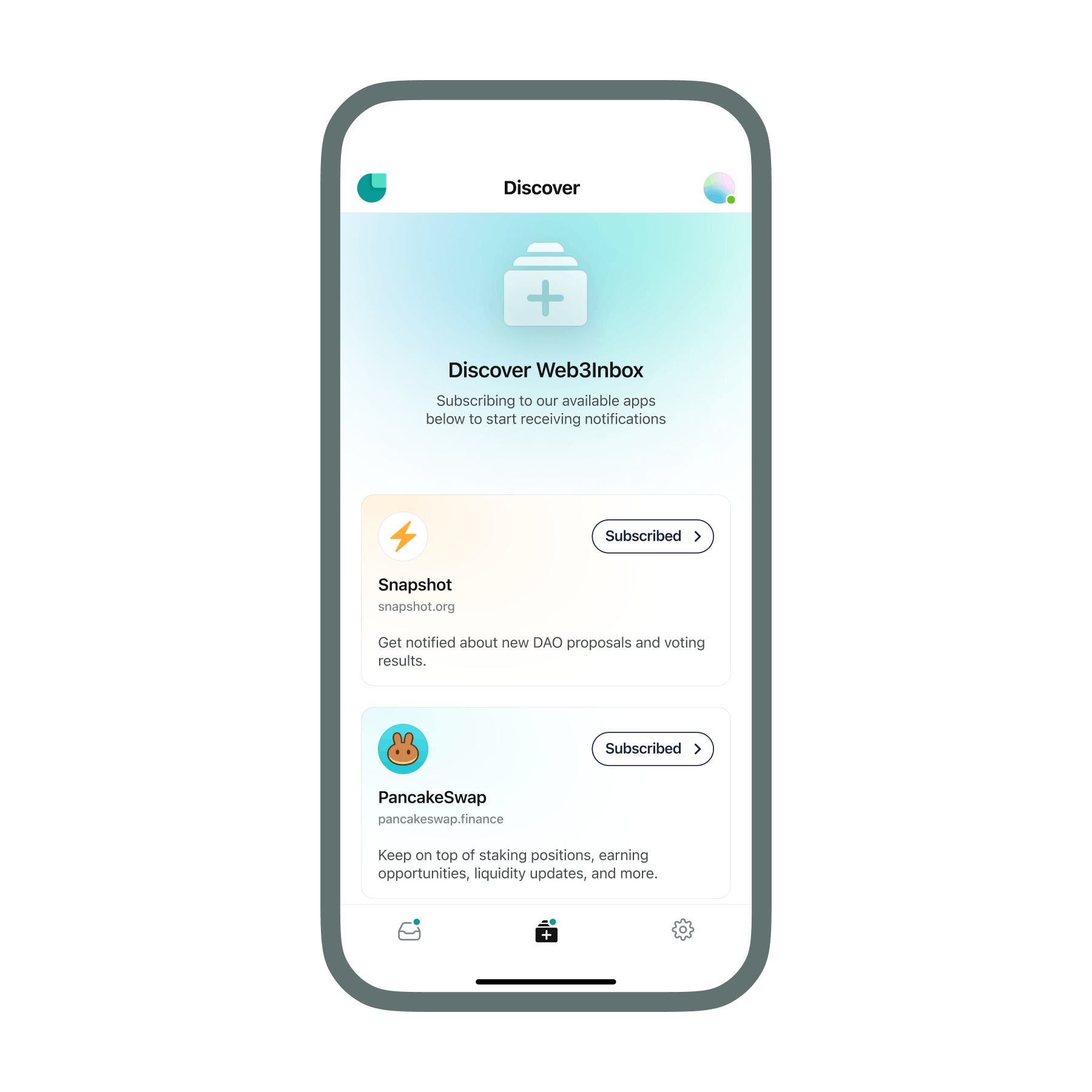 From DAO proposals to NFT drops, social updates to game requests — get real-time notifications from your favorite apps.